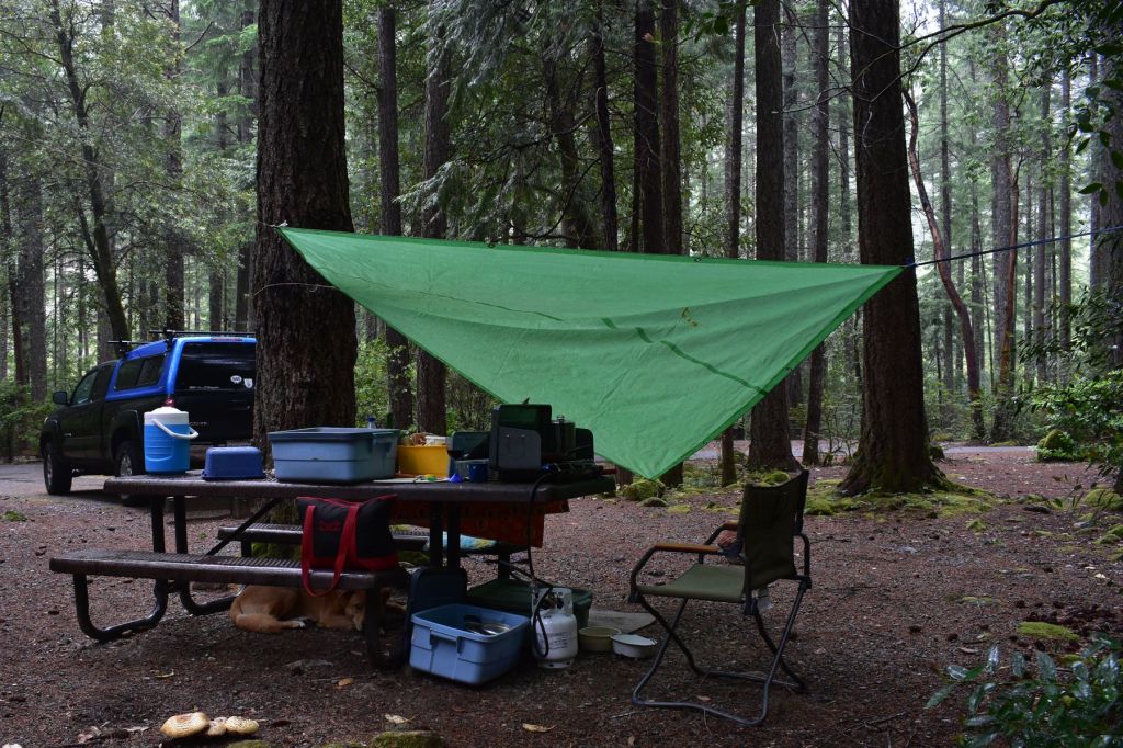 I dreamt I was on a raft floating in a tranquil small pond. Such a peaceful dream I didn’t want to wake from. It took hours before sleep graced me with her presence, the drumming of the rain on the nylon tent walls a deafening kind of torture. I tried to find joy in the rain, the way it can make all the colors in our world more vibrant, glistening and sparkly. How the tree branches drip a rhythmic tune. As the day faded away my revelry with rain was replaced with sheltering in the tent with a wet dog. In the morning when Rider’s nudges finally woke me and tore me from my tranquil dream I realized may dream had somewhat come true. Rider and I huddled in a snuggle on my sleeping pad were “floating” on a dry island in a completely swamped tent! That’s when the deep melodic voice of Greg Brown popped into my head….”Why don’t you just go home?”…..eventually….