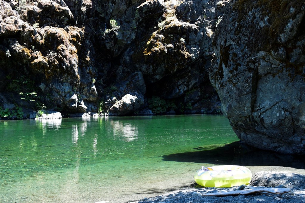One hella of a drive to one heavenly swimming hole ~ Matthews Creek!Within the the South Fork Salmon Canyon, perched on the hillside, half way between Forks of the Salmon and Cecilville you’ll find this tiny little Campground. The road to here is miles of curvy single lane carved into the cliff side, with numerous blind turns; a place you go slow and stay to the right. The reward spectacular. A visit to one of thee most wild, remote and iconic rivers in California.